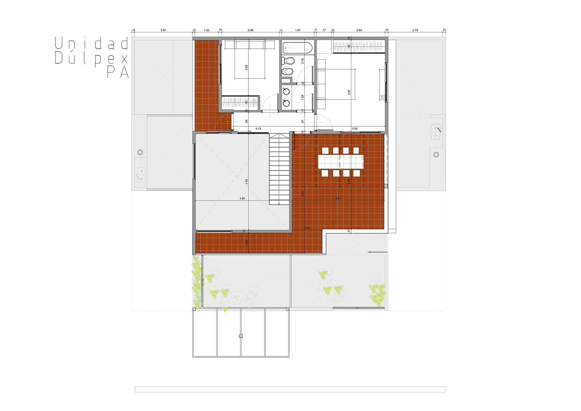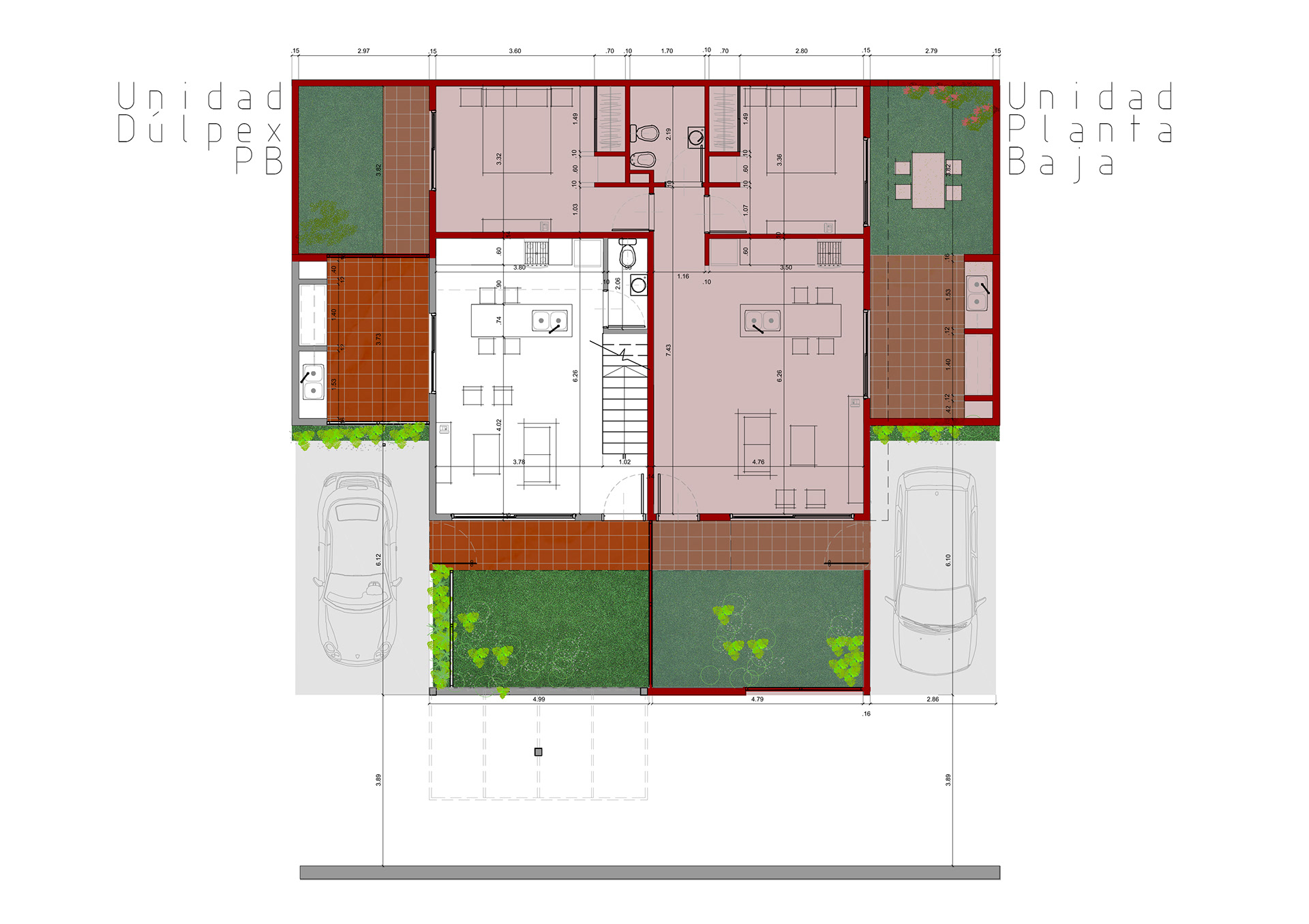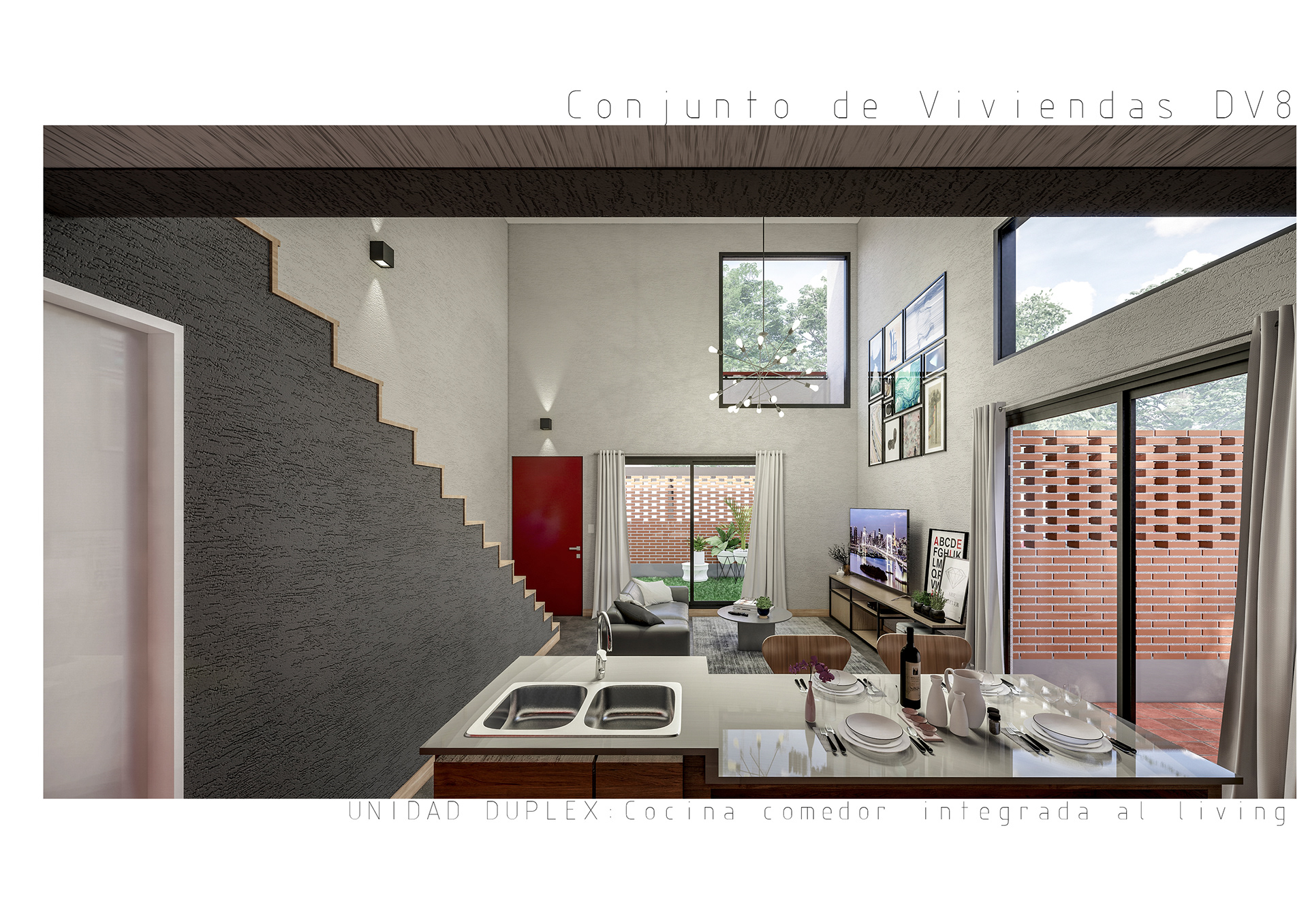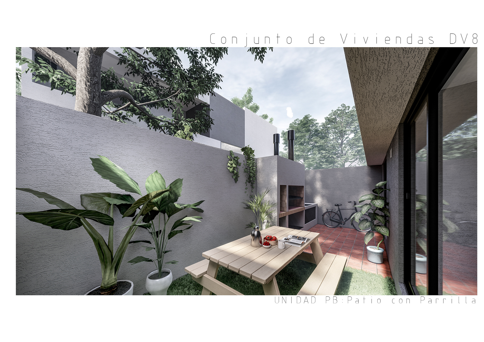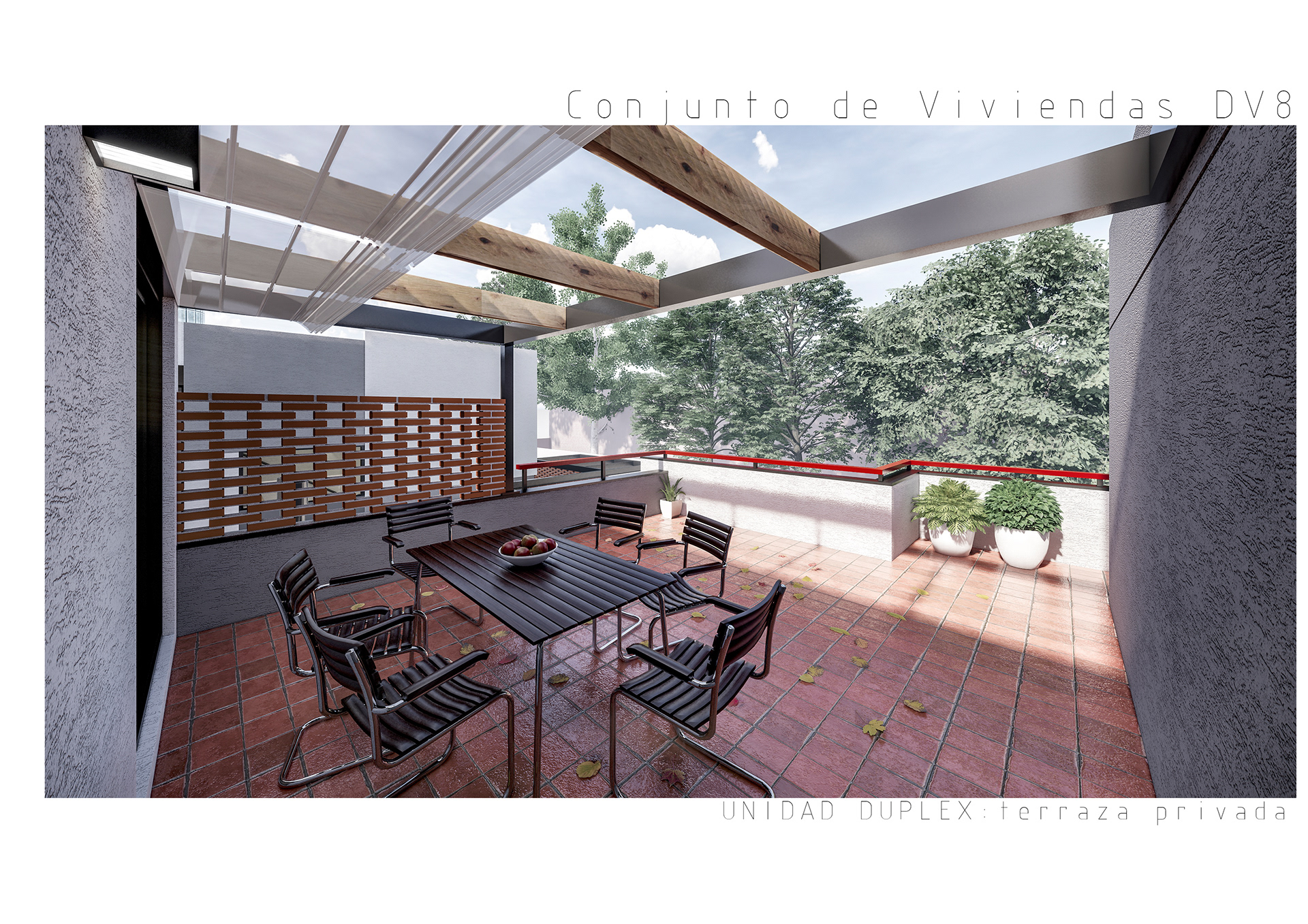 Conjunto de 8 casas en duplex de 3 hambientes con cochera, patios/terraza y parrilla individuales.
